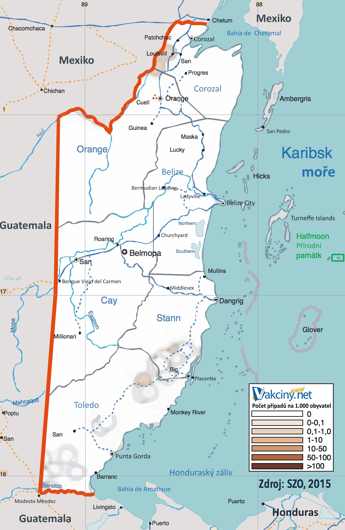 Riziko malárie existuje pouze limitované. Riziko existuje v severních okresech Corozal  ...