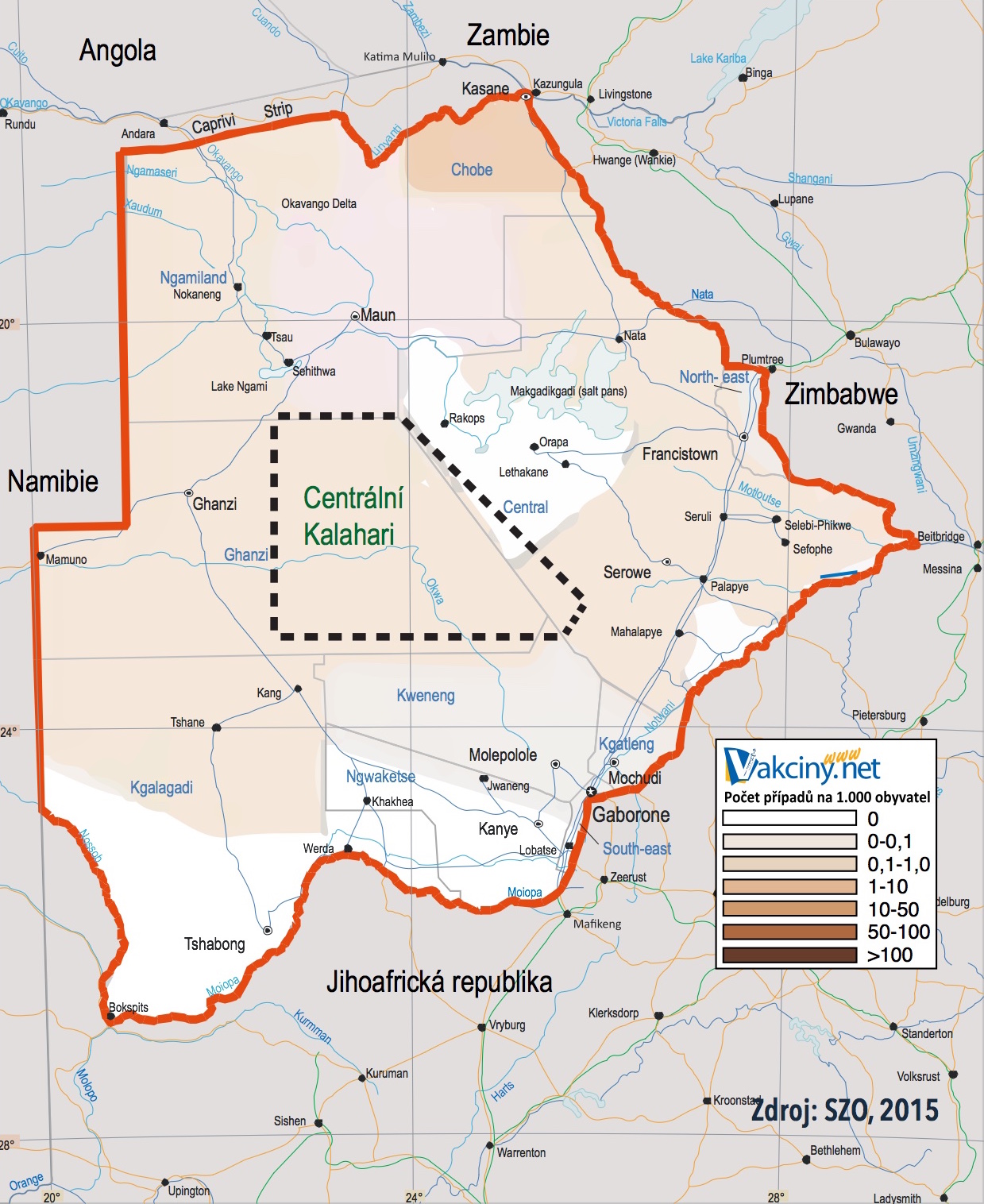 Bilharcióza - oblast Okawango