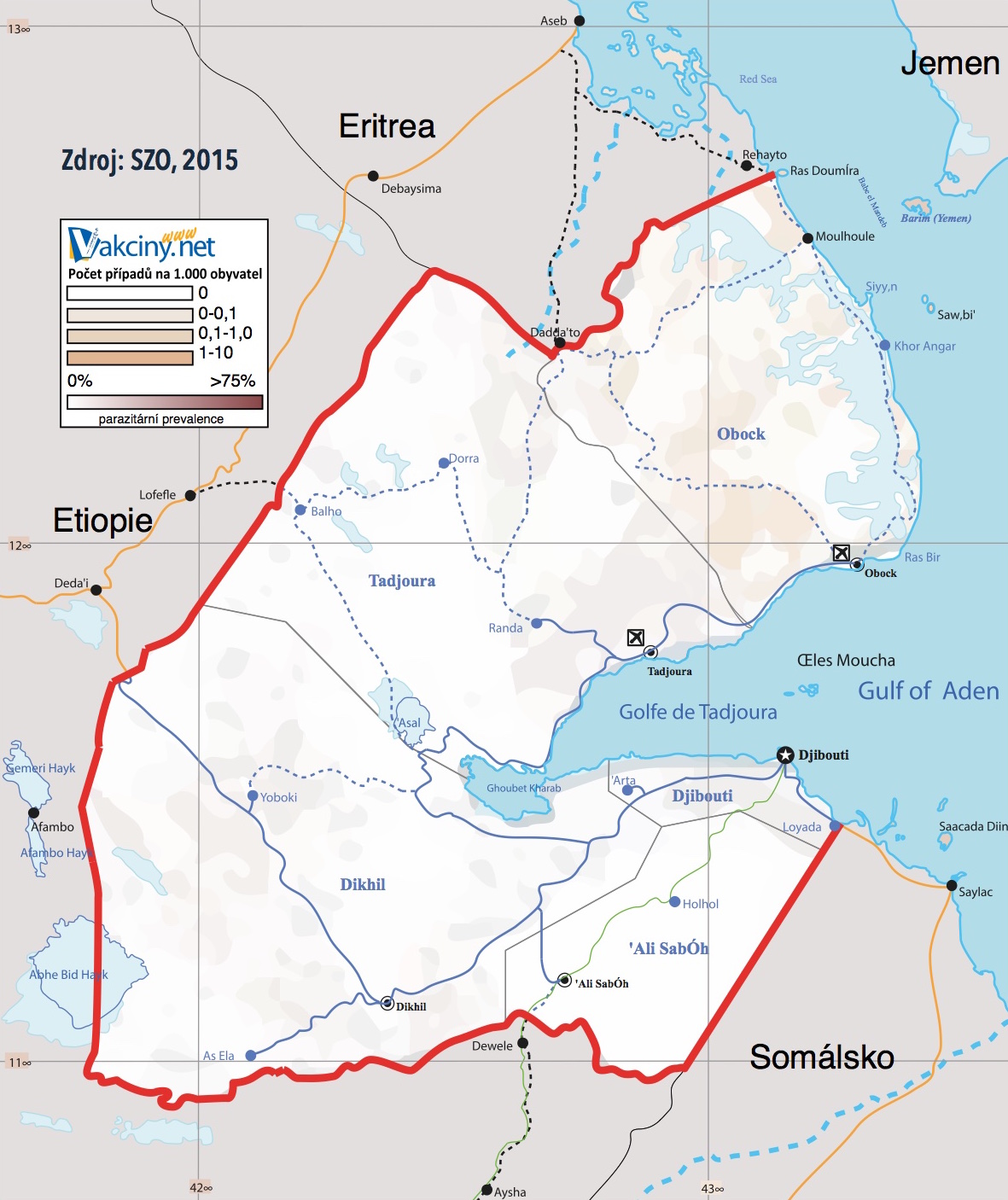 • AFRIKA: Angola, Benin, Burkina Faso, Burundi, Kamerun, Středoafrická republika, Čad (pouze část země je riziková), Kongo, Kongo DR (pouze část země je riziková), Pobřeží slonoviny, Rovníková Guinea, Etiopie (pouze část země je riziková), Gabun, Gambie, Ghana, Guinea, Guinea-Bissau, Keňa (pouze část země je riziková), Libérie, Mali (pouze část země je riziková), Mauretánie (pouze část země je riziková), Niger (pouze část země je riziková), Nigérie, Senegal, Sierra Leone, Súdán (pouze část země je riziková), Tanzanie, Togo, Uganda.