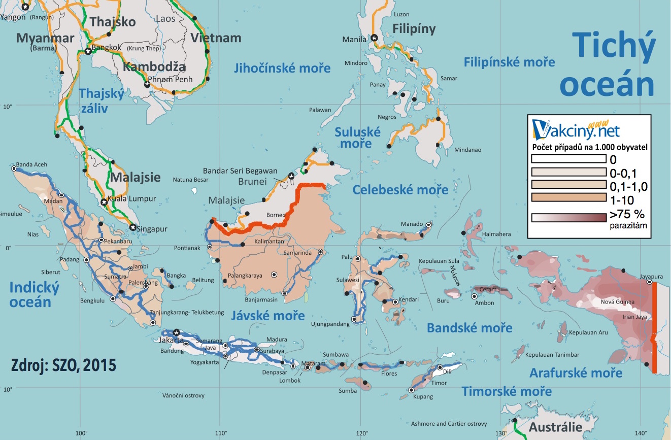 Riziko malárie existuje v celé zemi včetně městských oblastí a provincií Maluku, Maluku Utara, ...