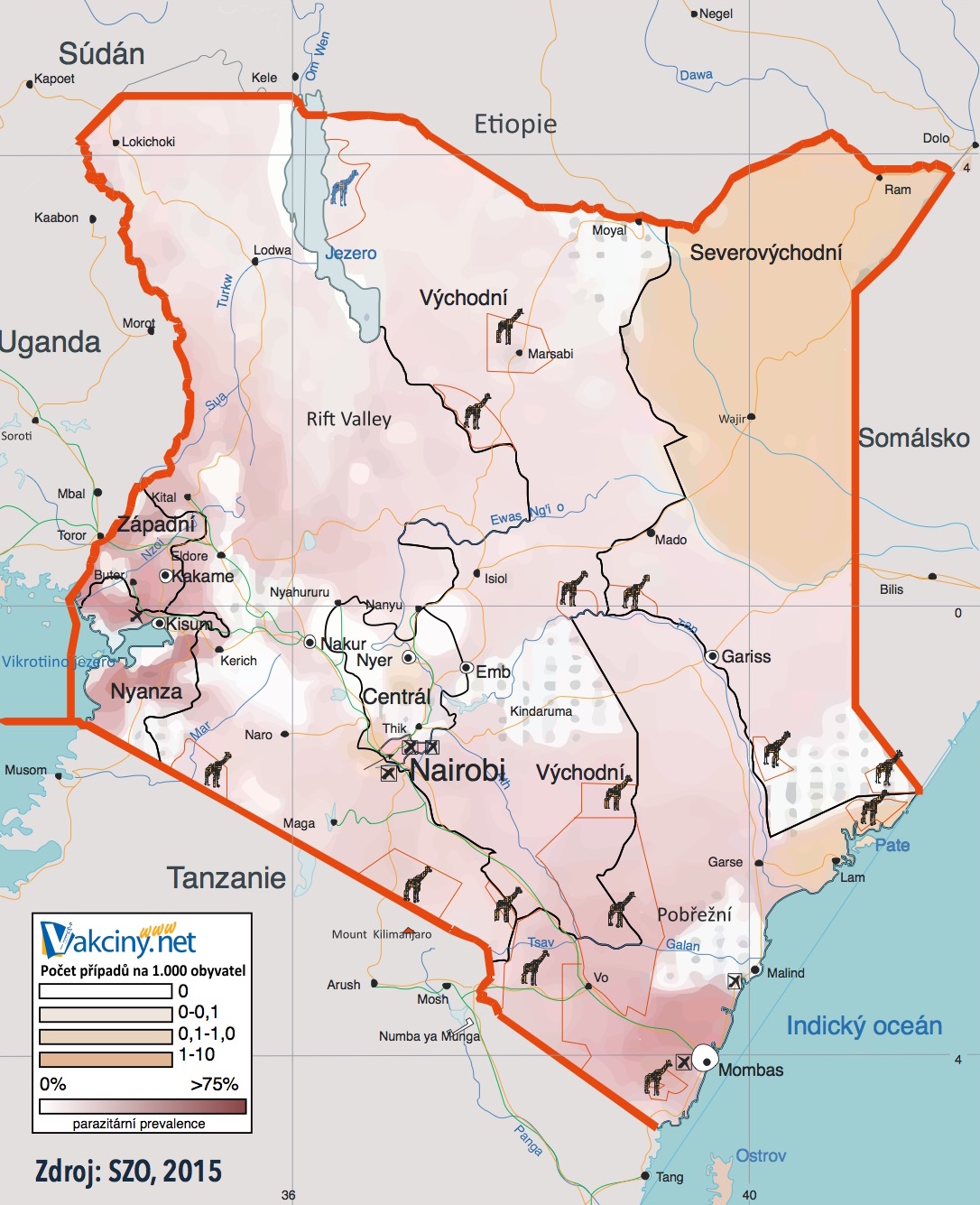 Riziko malárie existuje v celé zemi včetně městských oblastí, včetně města Nairobi...