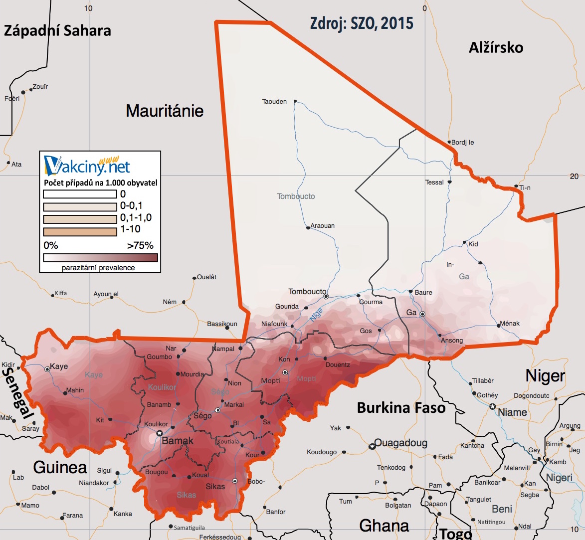 Očkování se doporučuje cestovatelům plánujícím dlouhodobý nebo pracovní pobyt v "africkém meningitidovém pásmu" severní Savany. Polovyprahlé oblasti se táhnou od Rudého moře až k Atlantiku. Riziko přenosu meningokokových nákaz kulminuje od března do dubna, převážně jižní polovina Mali. Očkování 1 dávkou vakcíny nejpozději 14 dní před cestou.