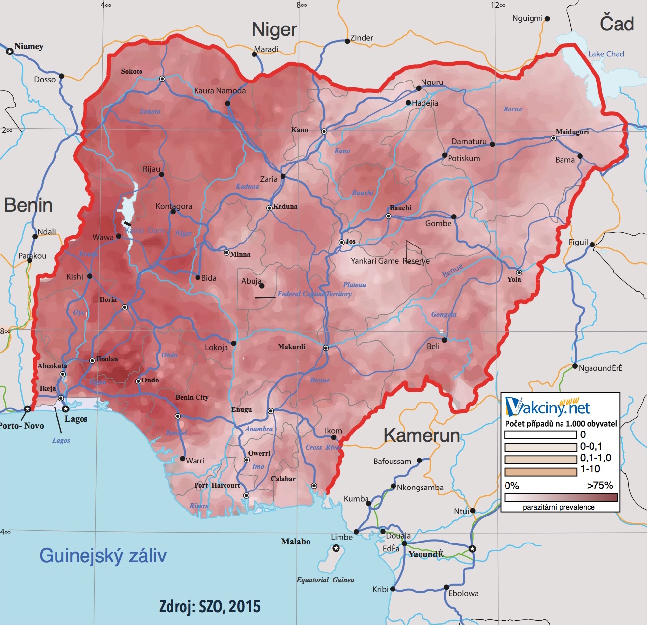 • AFRIKA: Angola, Benin, Burkina Faso, Burundi, Kamerun, Středoafrická republika, Čad (pouze část země je riziková), Kongo, Kongo DR (pouze část země je riziková), Pobřeží slonoviny, Rovníková Guinea, Etiopie (pouze část země je riziková), Gabun, Gambie, Ghana, Guinea, Guinea-Bissau, Keňa (pouze část země je riziková), Libérie, Mali (pouze část země je riziková), Mauretánie (pouze část země je riziková), Niger (pouze část země je riziková), Nigérie, Senegal, Sierra Leone, Súdán (pouze část země je riziková), Tanzanie, Togo, Uganda.