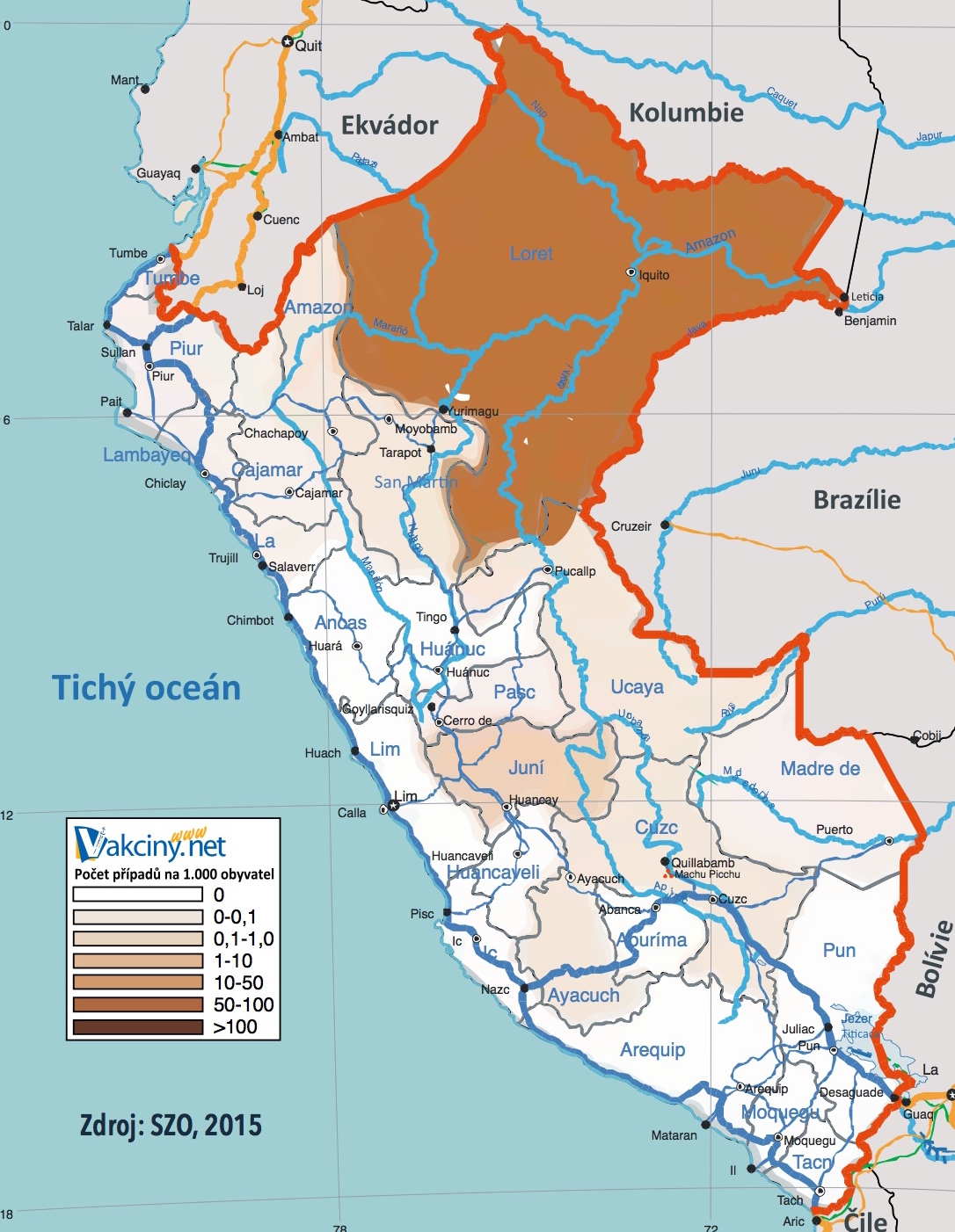 Podle CDC je vhodná antimalarická profylaxe: atovaquon/proguanil, doxycyklin nebo mefloquin - při pobytu v Loreto; v ostatních rizikových lokalitách lze použít jen chloroquin.