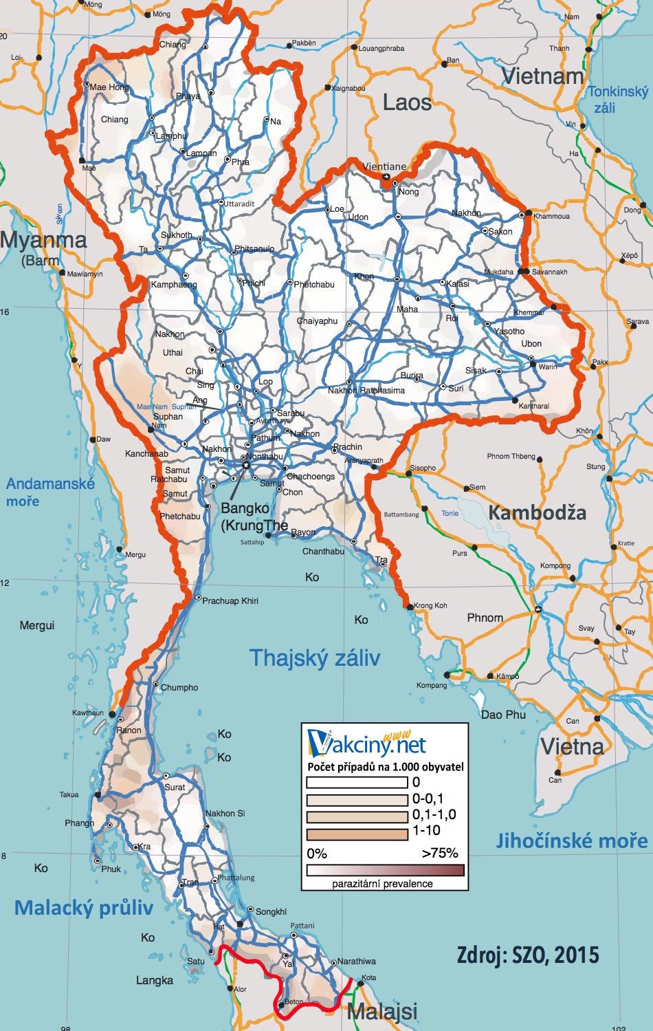 Riziko malárie existuje ve venkovských a lesnatých oblastech v příhraničí s Mynamarem, ...